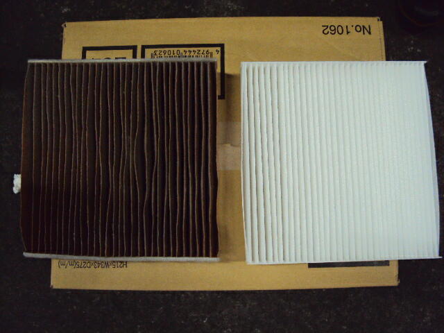 左が汚れたエアコンフィルターで、右が新品のエアコンフィルターです
